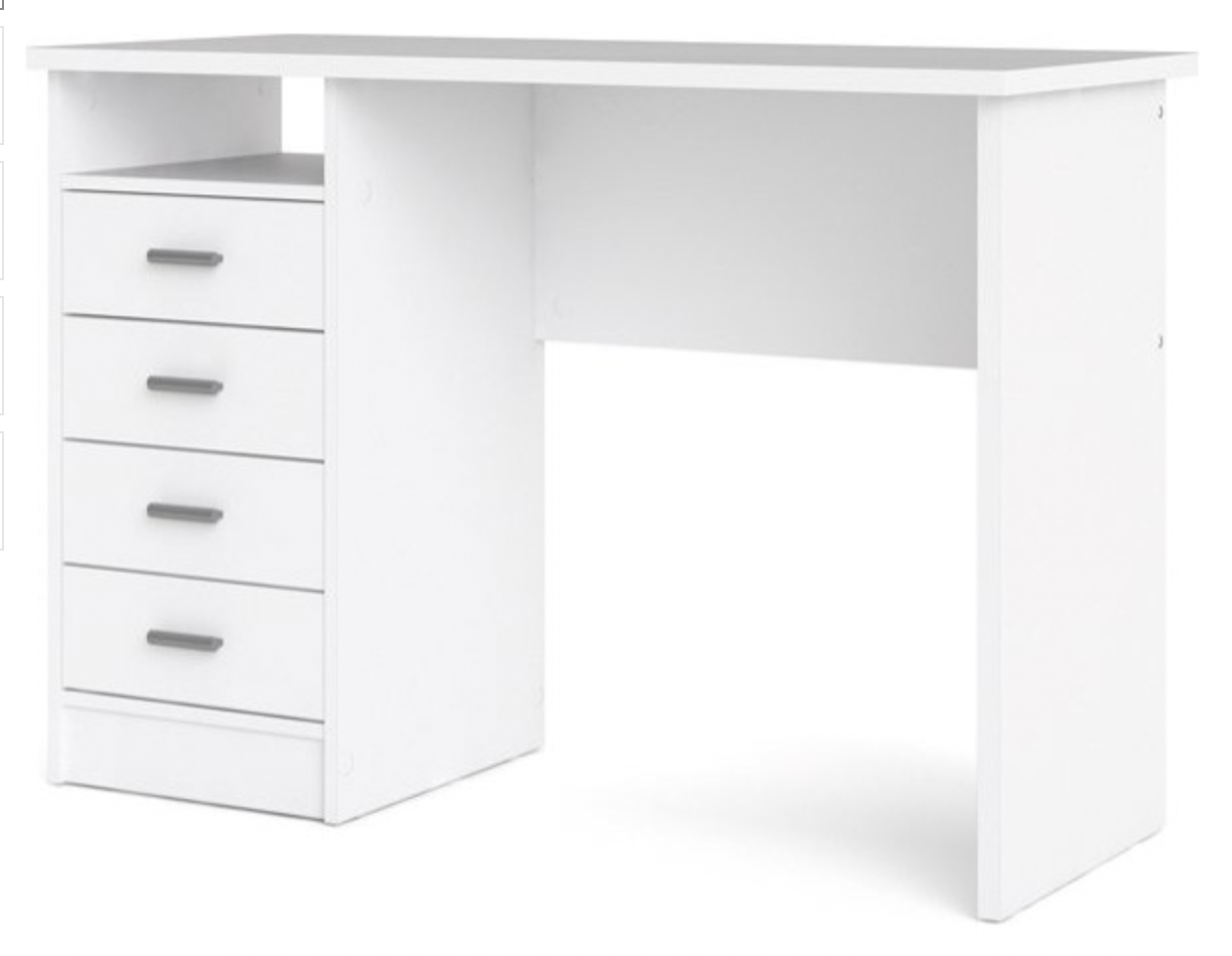 The Tvilum Warner Desk is the perfect addition to any modern office. This 4-drawer desk has a white wood executive desk with function and style that will look great in your home office or business space. The 4 drawers provide ample storage for all of your paperwork, giving you an organized workspace for everything else.