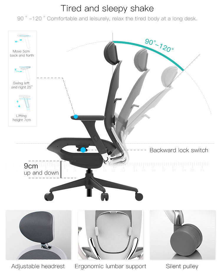 | Feature | Lumbar support, adjustable height, ergonomic backrest, 3D adjustable armrests, highly breathable mesh back, silent casters, various colors |