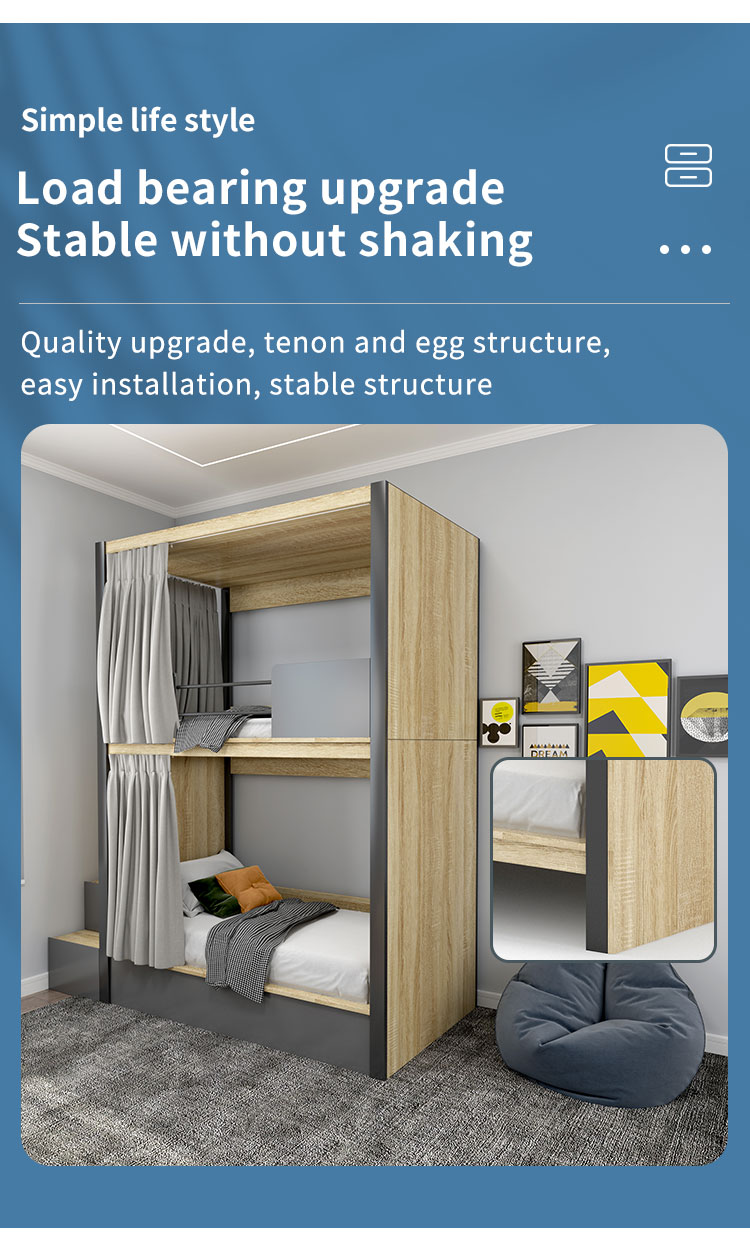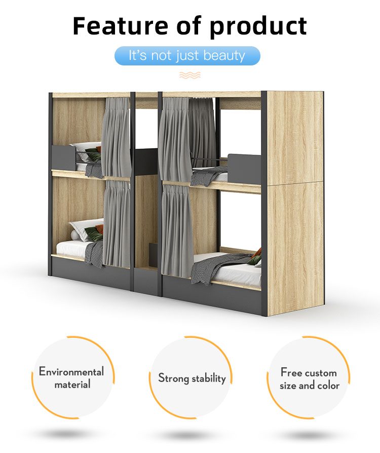 | Feature | Modern design, sturdy wood construction; ample space; blackout curtains; safety rails |