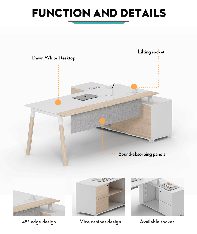 | Feature | Ample storage space; L-shaped design; large work surface, built-in cable management; with modesty panel |