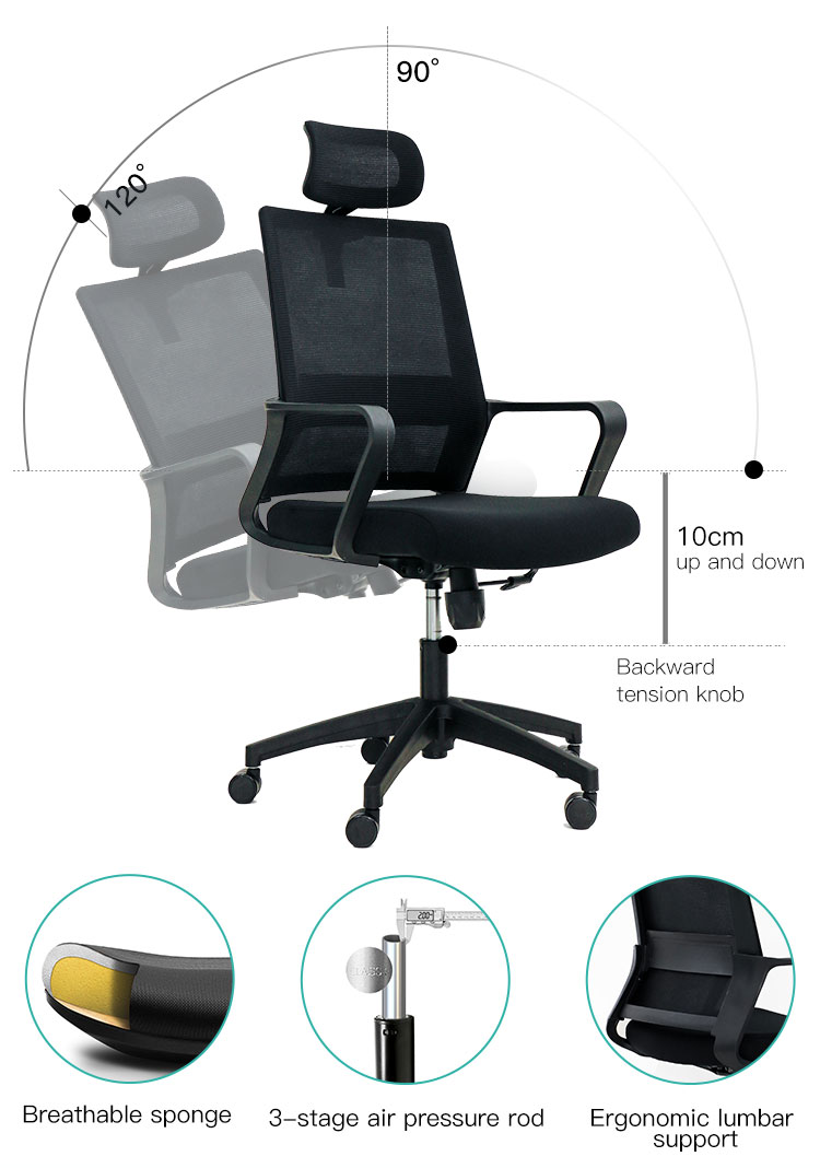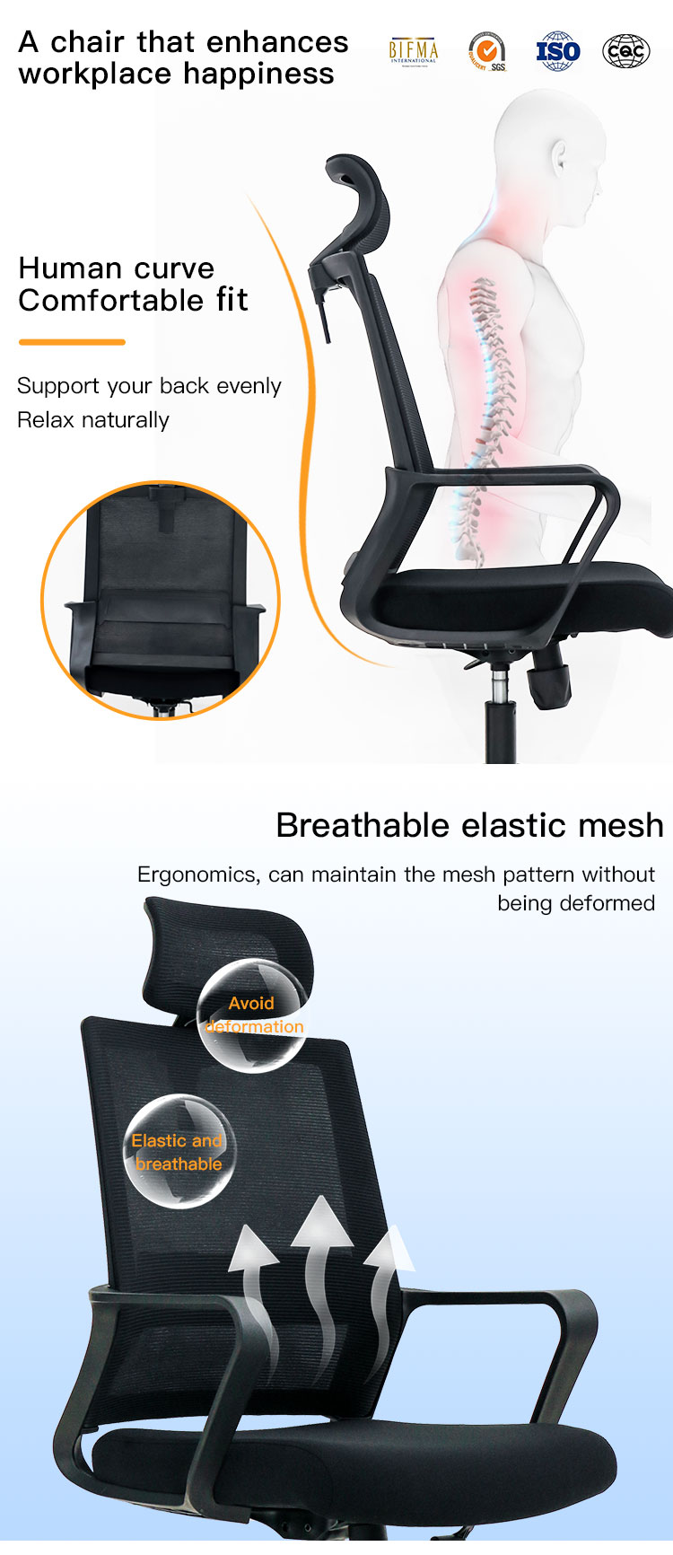 | Material | PP fiberglass mesh frame; imported mesh fabric; thickened sponge; 100% polyester wear-resistant fabric; PP fiberglass 5-star base; PU swivel castor wheel; SGS-certified gas lift |