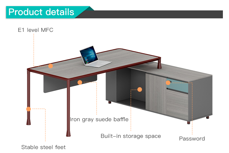 | Feature | L-shaped design; large work surface; built-in cable management; with modesty panel; stylish and sturdy metal frame; ample storage space |