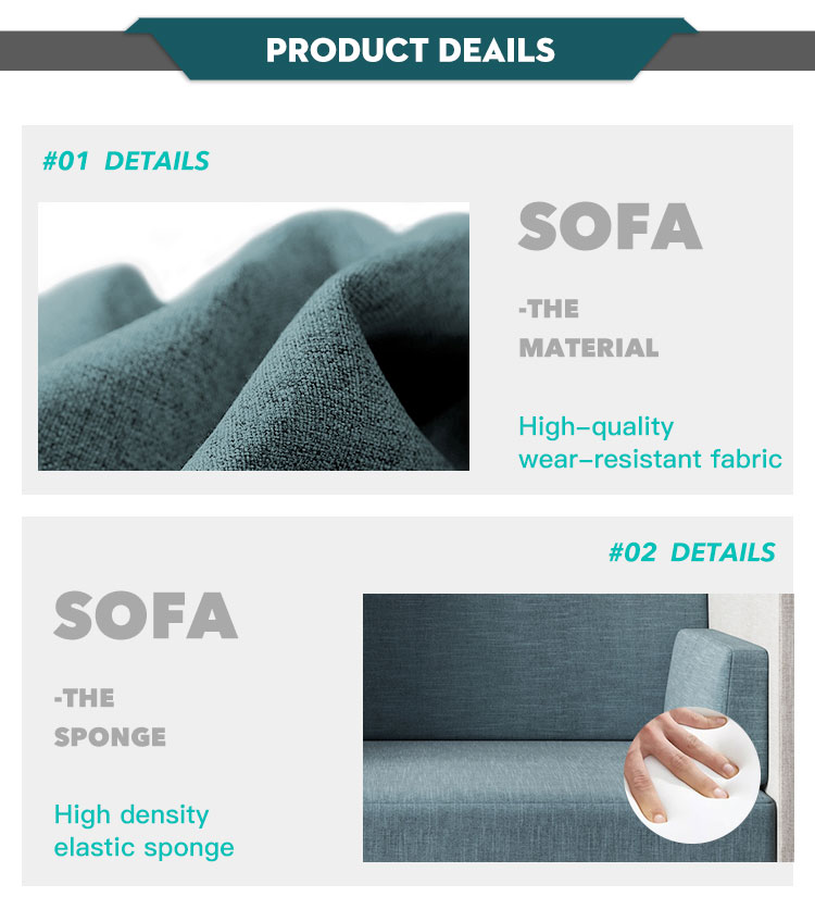 | Feature | Various colors; free combination; modular design; high-density sponge; sturdy wood legs, minimalist style; high sofa back; various sizes and shapes |