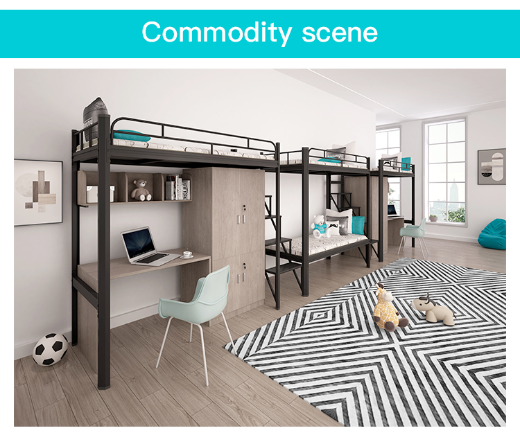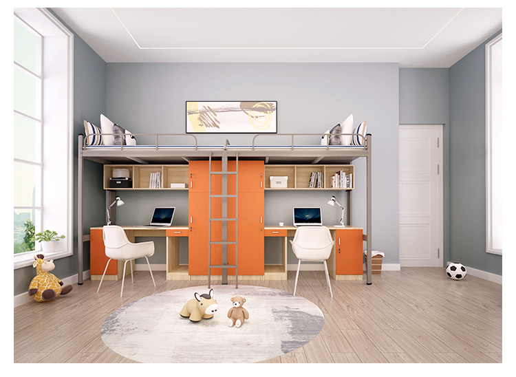 | Feature | Modern design, sturdy wood/metal construction; ample space; sturdy stairs; safety rails; with desk, storage shelves/cabinets and closet |