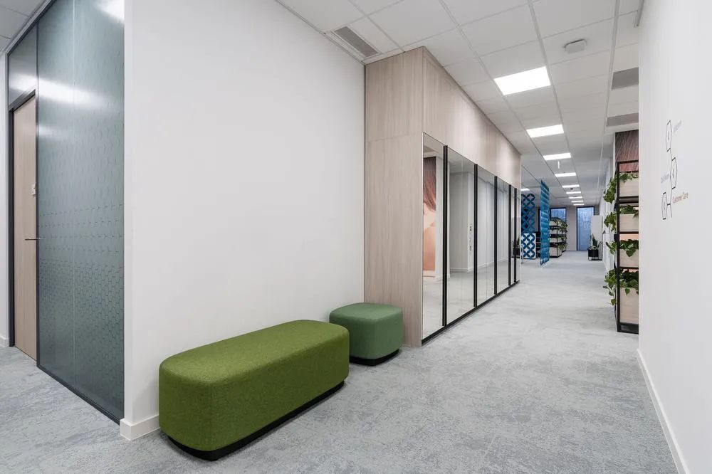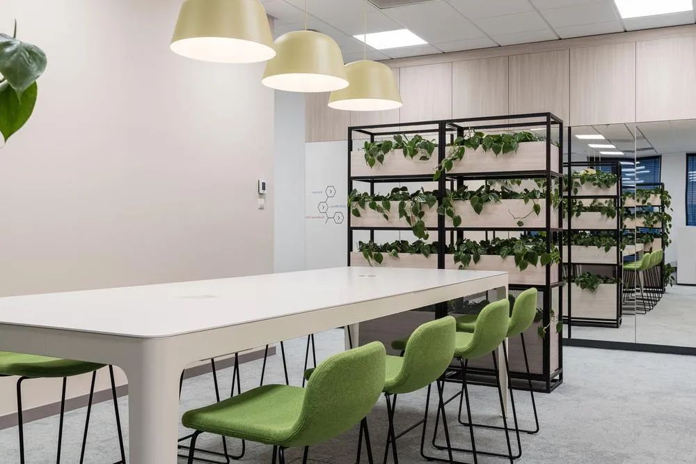 作为全球淀粉产业最大的生产商之一,罗盖特在人类营养、药物美容、波纹纸板、生物化学工业及动物营养领域,为客户提供一系列种类繁多的产品。并以长期可持续、创新及自愿承担战略为依托,致力于健康营养及植物化学的发展。其使命:“以自然之精华滋养全人类”。因此,客户希望拥有健康、清新、自然且开敞的室内风格,以助力该品牌在波兰的使命。因此,无论是设计理念、还是家具配置都采用环保可持续的设计解决方案。