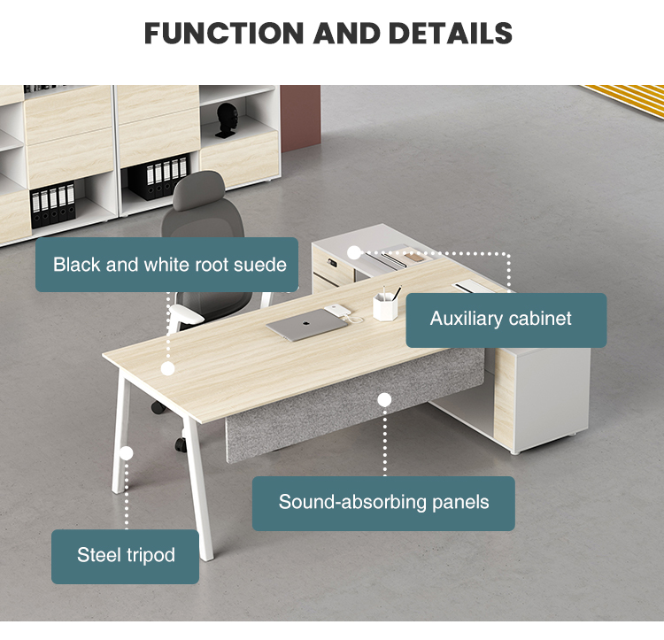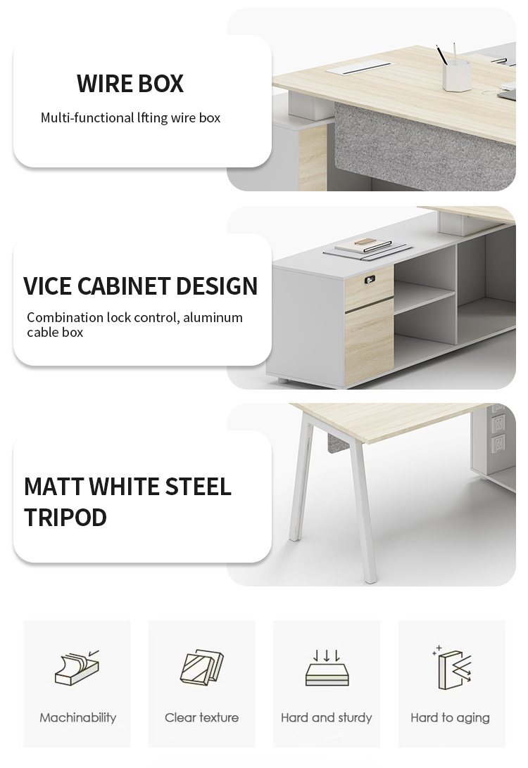 | Feature | Sleek and contemporary design; easy assembly; multiple configurations; spacious workspace; sustainable and durable materials; large cabinets |